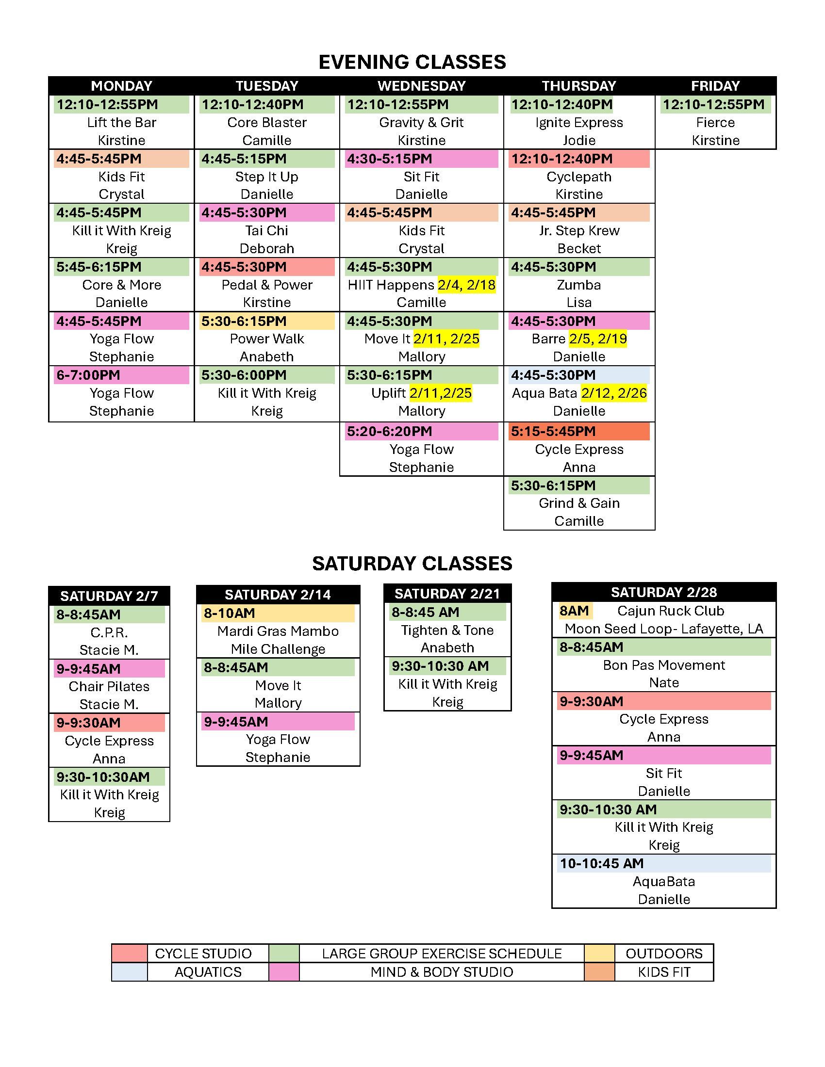 Bayou Bend Fitness Center Group Exercise Classes